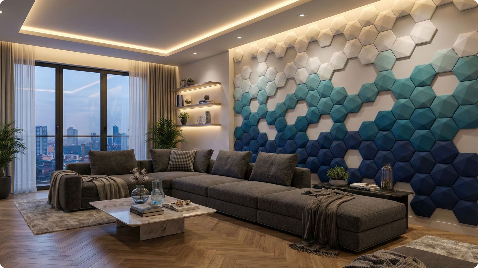Add instant depth and modern texture to any wall with these modular 3D soft hexagon tiles.